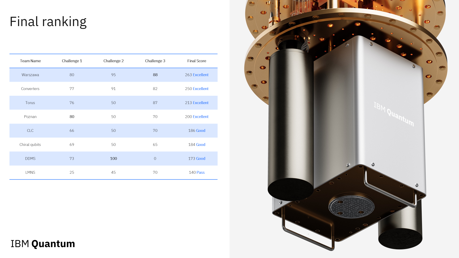 „Poznan Team” został poproszony przez organizatorów kursu o prezentację swojego innowacyjnego rozwiązania jednego z problemów projektowych. W imieniu zespołu, na ogólnym forum kursu, zreferował je pan inż. Wojciech Michalak. Wszyscy członkowie zespołu są byłymi i obecnymi dyplomantami ZIiMK, którzy swoje prace dyplomowe (a obecnie doktoraty) realizują w tematyce związanej z Inżynierią, Metrologią i Technologiami Kwantowymi.
