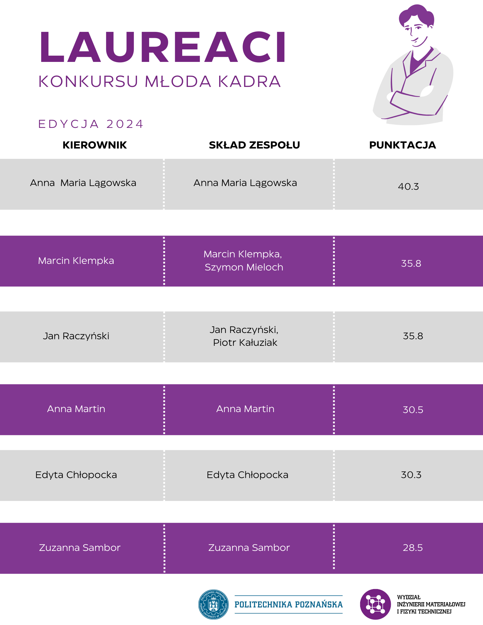 Młodzi naukowcy na Wydziale Inżynierii Materiałowej i Fizyki Technicznej PP w trybie konkursowym mogą ubiegać się o dotację na prowadzenie badań naukowych. Wnioski projektowe można składać indywidualnie lub zespołowo. Więcej szczegółów w regulaminie.