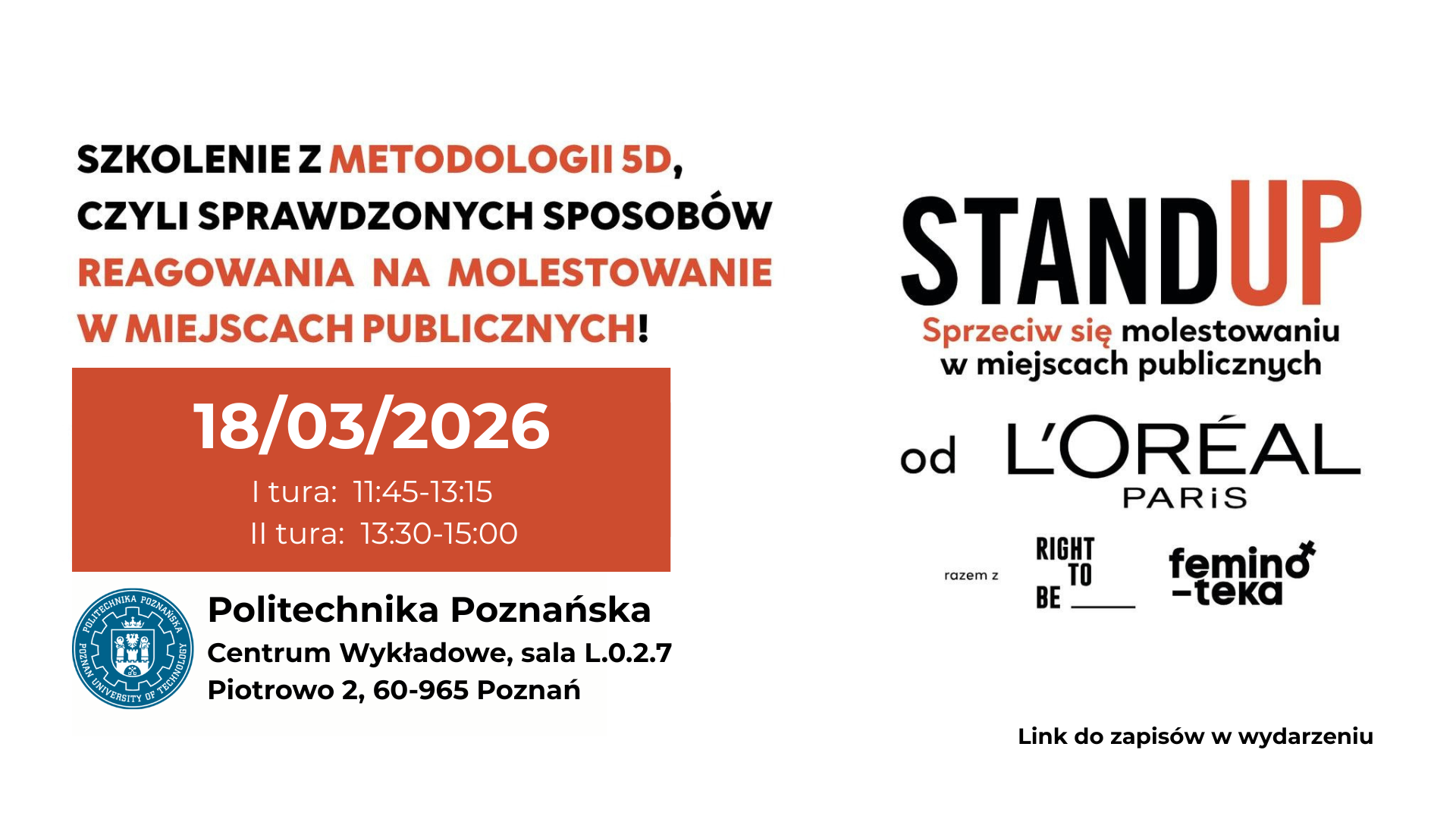 Chcesz się nauczyć, jak reagować, gdy widzisz molestowanie lub go doświadczasz? To szkolenie jest dla Ciebie! Jako grupa ISKRA i Dział ds. Równości Politechniki Poznańskiej serdecznie zapraszamy na warsztaty z reagowania na molestowanie w przestrzeni publicznej.